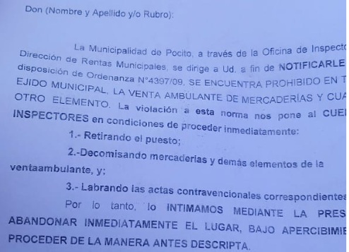 Los inspectores quedaron desbordados por la situación, tras la muerte del verdulero que había sido notificado de la normativa minutos antes, aquí mostramos el documento que se le comunicó al trabajador.