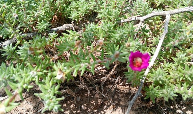 A solo 40 minutos de caminata suave desde la base del cerro, se encuentra el denominado «balcón del Abanico» un cerro alto, erosionado por el viento y estratégicamente ubicado para lograr hermosas postales «un punto panorámico increíble que al naciente se pueden observar variedad de cultivos dispuestos a modo de abanico, al Sur del balcón la cruz de tachos, al Oeste «la olla» una redonda cavidad en el cerro, que como un reloj natural con ayuda del Sol y provocando la sombra permite conocer la hora hasta el mediodía. Al Norte la Ciudad de San Juan.. A continuación compartimos flora por los senderos del Abanico, un verdadero parque natural / DR